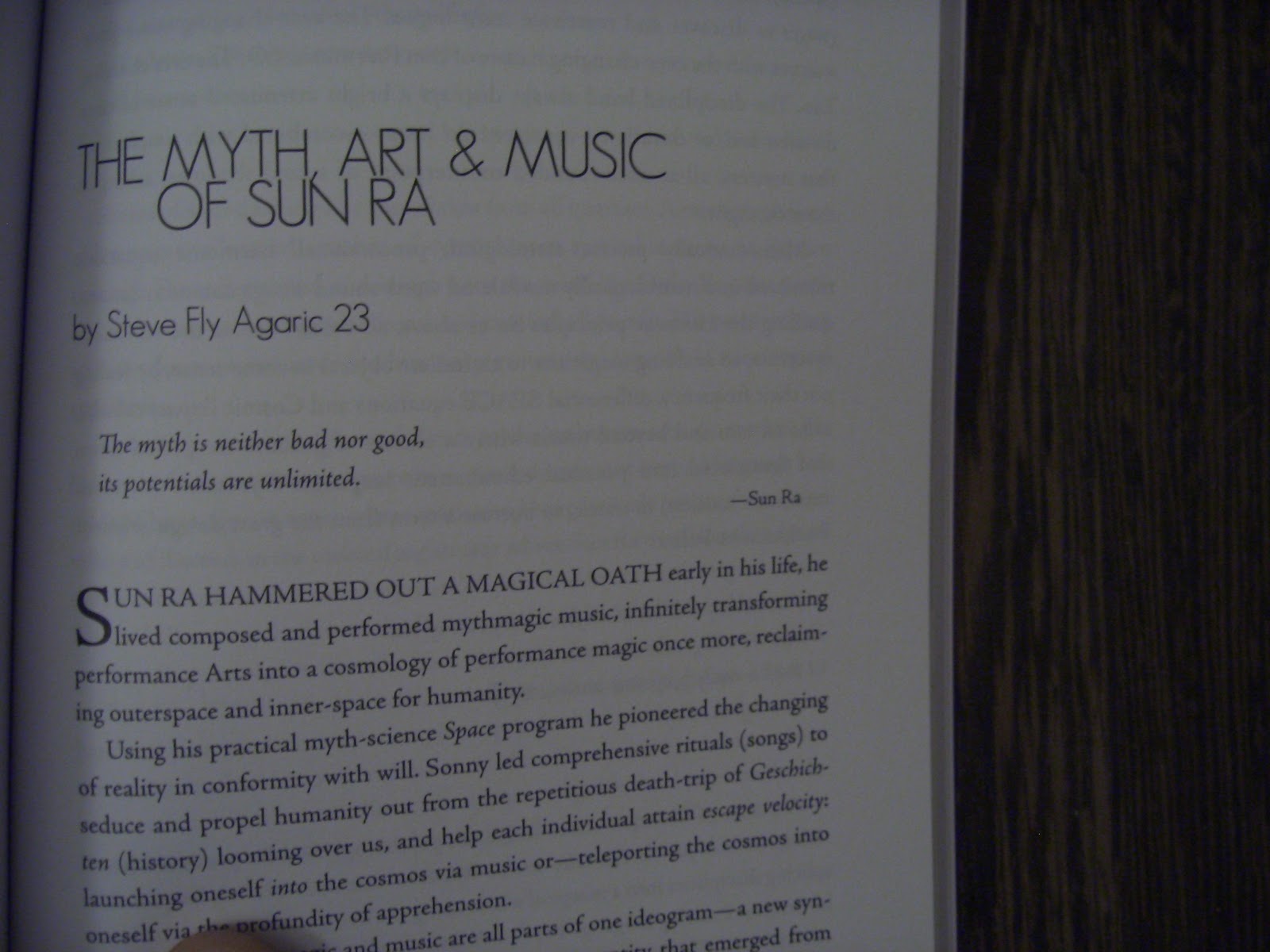 I received two copies of the book this week (28th April 2010) and feel greatly honoured to be included within a bounty of cutting edge 'Sun Ra' multi media research, and to be among literary hero's of mine such as Amiri Baraka and John Sinclair, who together have evidently tirelessly promoted the genius and wonders of Sun Ra for over forty years, and Black Music culture more generally for more than five decades.